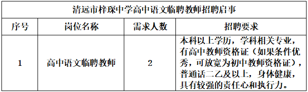 清遠市梓琛中學(xué)急聘高中語文臨聘教師