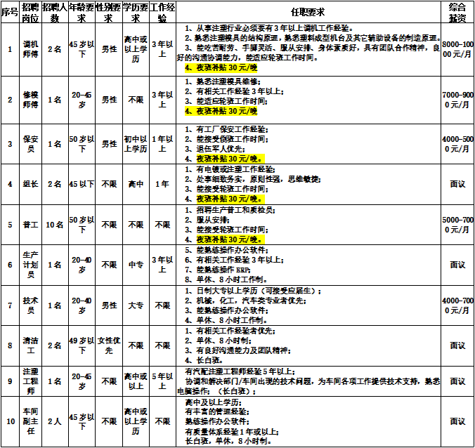 清遠市金鐘汽車零部件有限公司急聘如下職位: