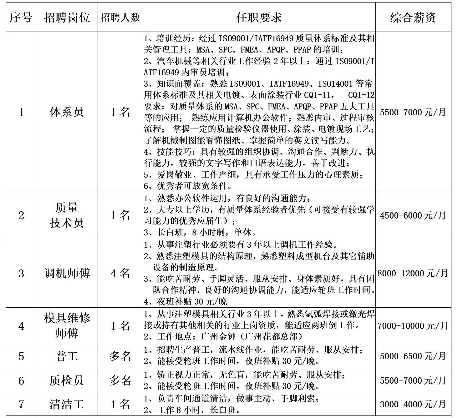 清遠市金鐘汽車零部件有限公司為廣州市金鐘汽車零件制造股份有限公司(股票代碼:301133)旗下子公立于2019年,總投資約3億人民幣。公司主要從事汽車零部件研發(fā)制造,也是國內外眾多汽車制造商一級或二級供應商,目前一期工程建造完畢,包括注塑、涂裝、粉末噴涂、PVD鍍膜、絲印、電鍍、自動化裝配等工序。公司一直秉承“持續(xù)改進,永續(xù)經營”方針,配套服務于各大主流汽車商,行業(yè)口口碑好;訂單飽滿。