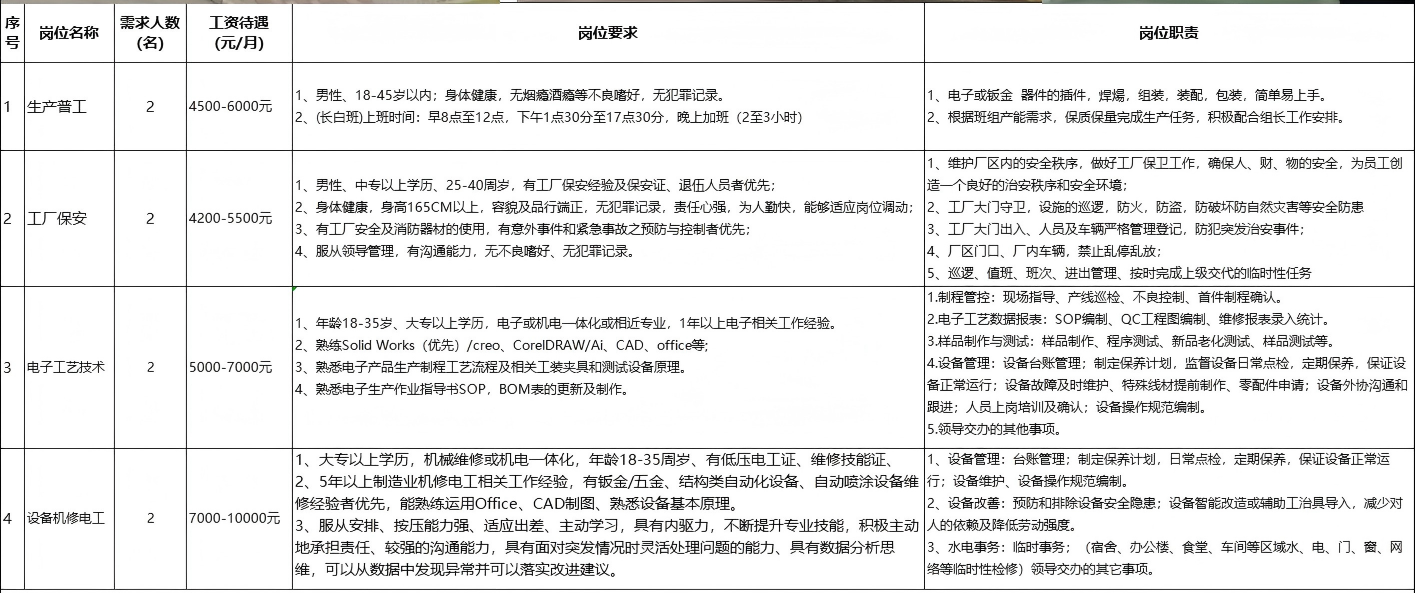 廣東日昕精密制造有限公司誠聘